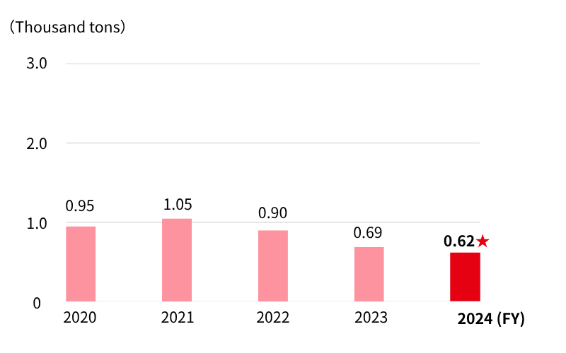 We are working to reduce hazardous chemical substance emissions through ongoing efforts to prevent leaks and transition to processes that create fewer emissions. In FY2024, due to those efforts in the carbon fibers and resin and plastic processing businesses, our hazardous chemical substance emissions were 435 tons